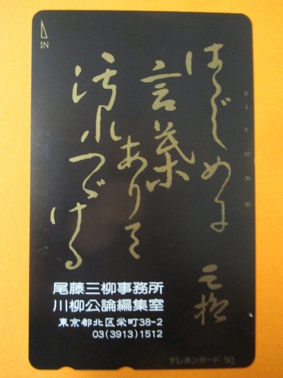 いやあ 凄いお宝ですね、川柳人のテレカを初めて見ました。私もテレカは持っていますが川柳のものは一枚もありません。鑑定団に出されてはいかがでしょうか。