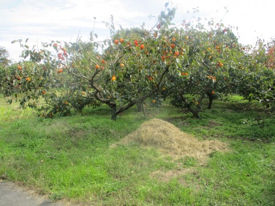 本日、昼前の散歩。久しぶりに私のパワースポットへ向かったら、途中で柿の木が10本ほど。どの枝にも真っ赤に熟した大きな柿(写真上)。道の傍のは手を伸ばせば簡単に取れるが、自重した。しかし、10本もまとめて植えているということは出荷しているのだろうか。それとも、出荷していたが止めてしまったの? よく分からない。