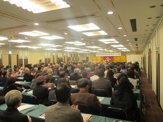 12日(祝)、ホテル9時出発。弁天町の会場「ホテル大阪ベイタワー」へ。片山かずおさんも来られたので、主催者に許可を得て、2人で「春の川柳塔まつり誌上大会」のチラシを配る。まだ早かったので、このチラシだけ。「これは目立って、効果抜群!」と思っていたら、次々にいろいろな大会のチラシがいっぱい配られたので、霞んでしまった。(写真下: 会場風景)