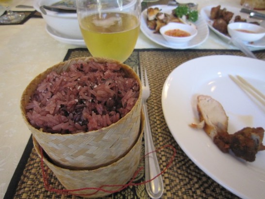 ルアンパバンでは同じホテルで2連泊。夕食は郷土料理の店へ(写真上)(正面のテーブルが私たちの予約席。だったか? 酔っぱらうと記憶回路がプッツンなので覚えていない)。ラオスの主食は「もち米」。それを1人分の可愛い蒸籠(せいろ)(写真下)で蒸したのがどこの食事でも出てきた。白いご飯もあったが、多くは「赤米」を使用しているのか、赤飯のような色だった。おかずも沢山あるので、このご飯はいつも半分以上残していた。料理の種類は多くて、味付けも日本人好みで食べやすかった。だが、パクチーを使っているのが必ず1皿あり、それだけは敬遠した。アルコールは昼食と夕食には必ず乾杯! 焼酎の御湯割りはないので、ビールガンガン。あるときはワインガンガンだった。ビールはいつもラオス代表の「ビアラオ」写真下。