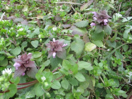 シソ科ですか、そう言われると、葉の形は紫蘇と似ていますね。はい、今日は天気が良いので、午後の散歩のときにでもアップで撮ってきましょう。でも「ヒメオドリコソウ」で検索すると、写真いっぱい出てきますよ(記事の右側)。
