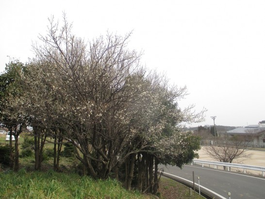 写真上: 本日の散歩道にて。花木の名前は知らないので自信はないが、たぶん梅…。