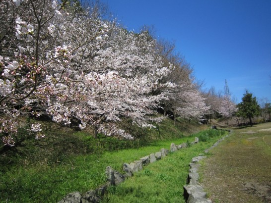 写真上、いずれも散歩コースの公園内の桜。上はテニスコート横の「私の桜」ほぼ満開。次のも、同じ位置の東から遊歩道を見る。桜・椿に負けずタンポポが頑張っていた。夕刻にもう一度出かけたが、風が強くて戦意喪失。途中でUターンして帰ってきた。