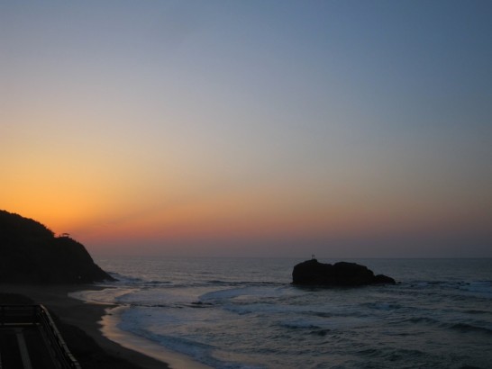 昨日、白兎海岸の夕日は、ものすごく大きく感動的だったのですが、私のデジカメではその迫力が掴み切れずイマイチ。このシルエットがベストでした。