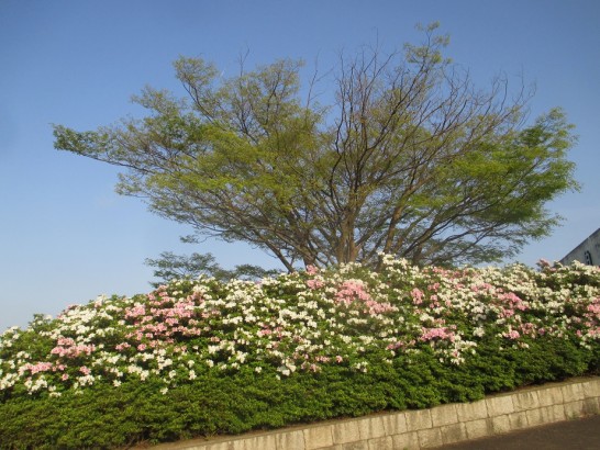 写真2枚目は、同じ公園内のヒラドツツジ。この花はゴールデンウィーク前後に満開になる。昔、現場監督をやっていたひととき、尼崎市との「緑化協定」があり、広大な敷地の何割かは植栽しなければならなかった。で、少しの空き地にも、丈夫なヒラドツツジを植えたり藤棚を作って藤を植えた。身体を壊して36歳で退社。家内の郷里の鳥取へ隠棲してからも、同僚から「おまえが植えたツツジや藤が満開や。見に来いよ!」という便りが届いていた。が、その同僚もとっくに定年退職して…、はてさて、あのツツジや藤たちはどうなったことやら。