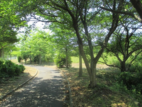 写真上: 昨日、総合公園の遊歩道にて。快晴で少し暑くてすっかり初夏。
