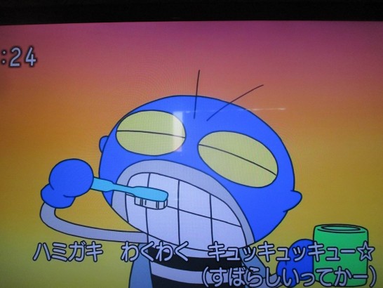 写真いずれも、朝のNHKこども番組「花がっぱ」より。元気で愉快なエンディングマーチ「はみがきのうた」?だったか? 朝7時20分に目覚ましをかけているが、朝から事故や事件の鬱陶しいニュースは嫌なので漫画を観ている。 最近のエンディングマーチには「やさいだいすき」があるが、これも愉快。