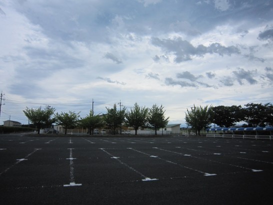 写真上: 本日、昼前、総合公園の駐車場へ車を入れて降りると、「キャーキャー!」と子供たちの賑やかな声。写真の樹木の向こうの建物は「八橋こども園」で道路側にプールがある。メチャむし暑かったので子供たちも喜んでいたようだ。