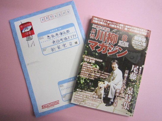 写真左のもの、皆さんはご承知かもしれないが、私は初めて見たの「スマートレター」。本日、これで冊子が送られてきた。右の「川柳マガジン」は、大きさ比較で並べただけで、このスマートレターで送られたものではない。