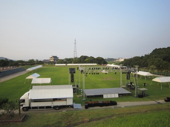 写真上: 夕刻の散歩で総合公園の遊歩道を歩いていたら、サッカーグランドで「白鳳祭」の準備をしていた。サッカー場の向こうに見える白いテントは飲食の売店。手前右は歌ったり踊ったりのステージ。ステージの上のカラスのようなのは照明器具。通りがかったときは音響のテストをしていた。今年は孫台風が上陸しなかったので、まったく気にしていなかったが、明日が祭りのよう。例の「レーザー&花火ショー」が素晴らしいので、それだけでも観に行こうかと思っている。