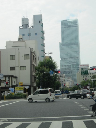 ケータイで連絡して、京都から帰宅途中の家内と義妹、阪神百貨店5F婦人服売り場で待ち合わせ。椅子に座って10分ほど、「旅行用のバッグを買った!」と現れた。で、2人を乗せて4時過ぎに2ビル地下パーキングを出発。順調に走って午後7時30分帰着。(写真上: 昼食後、近くの四天王寺までぶらぶら。何かの縁日だそうで賑わっていた。 写真次: 朝9時アベノハルカス(右)、川柳塔社事務所は、二つ目の信号を左に入って曲がって200メートルほどのところ。