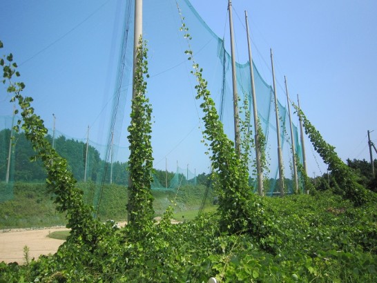 写真上: 本日昼前の散歩コースにて、廃業したゴルフ練習場のポールやワイヤーに絡みついている葛。恐竜を思わす凄いパワー!