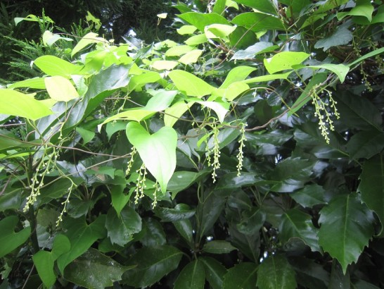 17日のブログで写真をアップしたように、大きなムカゴを見つけたので、本日、いつも採る穴場へ見に行った。が、まったく見えず、白いツブツブの花がいっぱい咲いていた(写真上)。ネットで調べると、この花が結実するのは稀で、これがムカゴになるわけでもなさそう。いずれにしても収穫はまだ今月末ぐらい?だと思う。