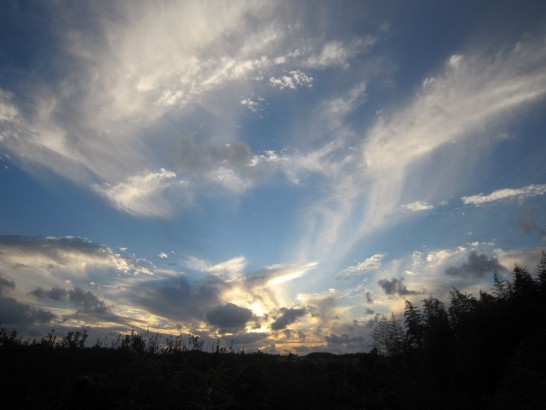 いちばん魅力的な雲の色合いは、やはり夕刻ですね。夕映えと雲が絡み合っている有り様は見飽きません。でも、見惚れているとシャッターチャンスを逃してしまいますので、先ずは、カシャッと写してから、ゆっくり楽しんでいます。