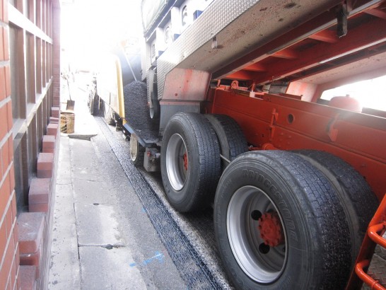 工事にかかわっている皆さん、だらだらしている人はいませんね~。無駄口も叩かずチームワークもバッチリ! ガードマンも超親切、拙宅に来ようとしているご婦人などに対しても、抱きかかえるようにしてエスコート。お婆ちゃんも感激して「お小遣い少しですが、どうぞ!」と、言ったとか、言わなかったとか…(-_-;)。