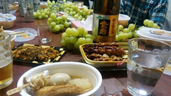 昨夕6時より、コンテナハウスにて飲み会。参加者9名。焼酎湯割り&おでん・焼き鳥・焼き魚・高級葡萄(桃太郎)etc。2時間ほどワイワイ。のち運転代行を呼んでおしんへ。いつも付き合ってくれるAさんは野球を観る?とかで私1人。おしん、顔見知りばっかり。数えたら私を入れて8名ほど。ここでも2時間ほど騒いで帰宅。ブログを更新しようとしたが、パソコンを開いたまま寝てしまった。