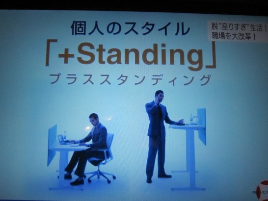 今夜は、仕事の効率という切り口ではなく「日本人は座る時間が長すぎる。立っていたほうが健康に良い」というようなことだった。家具メーカーの「オカムラ」が開発した「座位置」から「立ち位置」にテーブルの高さをワンタッチで変更できる机も紹介されていた。思い切ってこれを導入した会社のことも紹介されていた。