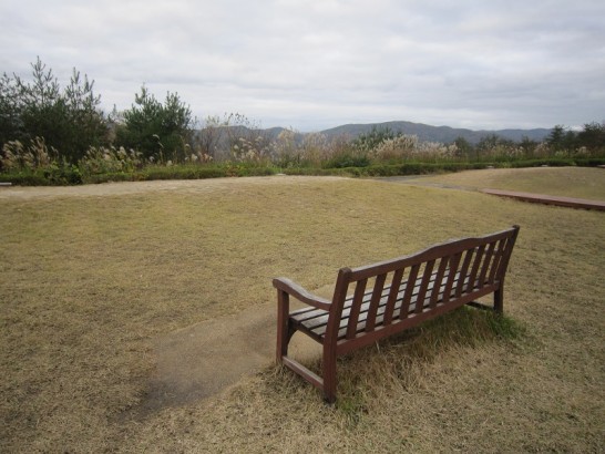写真1: 往路、関金にある農業大学の銀杏の樹。あまりにも鮮やかだったので、構内に入らせていただいてパチリ。 写真2:帰路、定点観測の「考える椅子」。「寒がりのあなたには苦手な冬がきますね。おだいじに!」と言っていた。