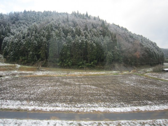 写真1:岡山への往路。鳥取と岡山の県境あたり。うっすら雪景色。 写真2:イオンモールをぶらぶらしていたら「獺祭」がズラリ!と並んでいてビックリ! 写真3:忘年会後、一緒に岡山駅へ向かったカルチャーの別嬪4人組。イルミネーションはイオン。 写真4:特急「やくも」での1人宴会。焼酎と蒲鉾は岡山駅で別嬪さんが差し入れてくれたもの。