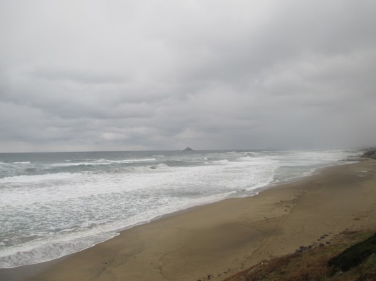 本日27日は、第4日曜日にて「うぶみ川柳会」例会日。朝からずっと雨と風。いつもの「白兎海岸」での定点観測も寒いからパスしようか、と思っていたら、丁度小降りになっていたので陸橋に駆け上がってパチリ(写真上)。写真ではイマイチ迫力がないが、真冬の日本海の怒涛であった。