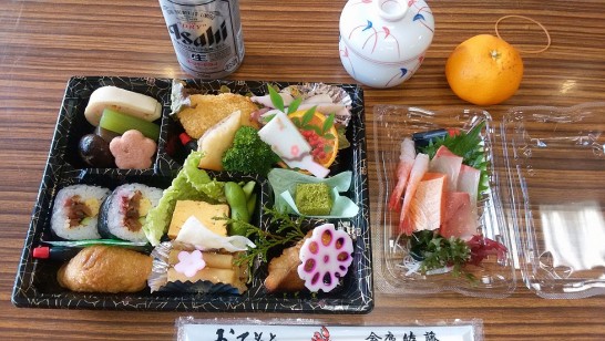 お刺身、プリップリでバッチリ! 弁当もベリーグーでした。