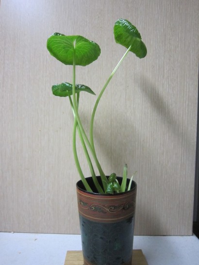 はは~、奥さまがそれほど確信を持っておられるということは、サトイモの幼い茎や葉っぱが、この写真とソックリなのでしょうね。でもハズレ~です。サトイモではありません。