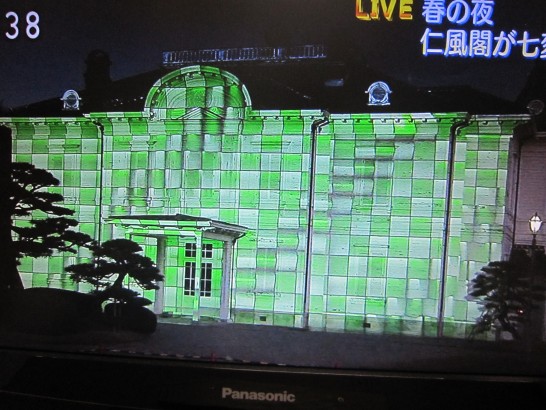 写真上は、国の重要文化財に指定されている【仁風閣・じんぷうかく】。1907年、大正天皇が山陰行啓されたときに宿泊施設として建てられた。本日夕刻のローカルニュースで、3D映像でライトアップすると報じていた。上の写真は、そのテスト映像。