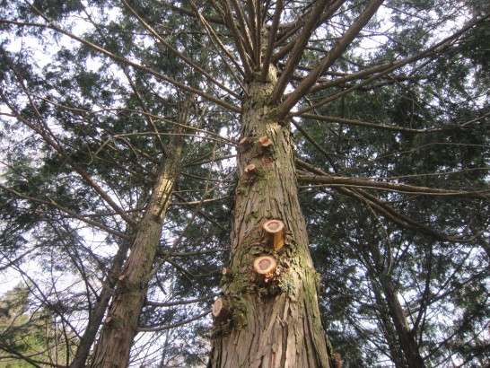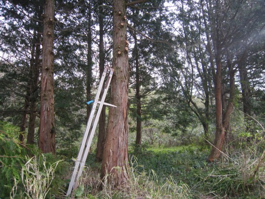 慣れない作業、やりたくなかったのですが、あまりにも伸び放題で、薄暗くて鬱陶しかったので…。私の知人も「枝打ち」で転落して亡くなりました。