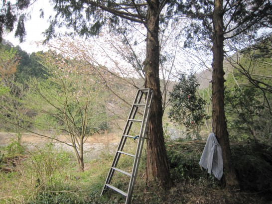 本日、朝食を早目に済ませて6時30分出発。半年ぶり?の山へ。雑草退治のつもりだったが、草はまだ勢いがなかったので放置。伸び放題になっている木の枝打ちにかかった。枝打ちと言っても木によじ登るのではなく、脚立を梯子代わりにしてそれに登って。太いのは直径8センチほど。細いのは3~4センチほど。枝打ち鋸で伐り落とす。1時間ほどやったあたりから草臥れて、休み休みボチボチ。結局2時間みっちり。後から数えたら伐ったのは50本ほど。足腰は日課の散歩で少しは鍛えているが、腕は怠けているので、明日は筋肉痛だろう。(枝打ち写真の3枚目、脚立の向こうに見える桜は、重忠さんが植えてくださった山桜)(4枚目、バーベキューコーナーから見た加勢蛇川・かせちがわ)(写真下1枚目、昼の散歩道。ピンクの絨毯)(写真下2枚目、夕刻の浦安駅南の桜)