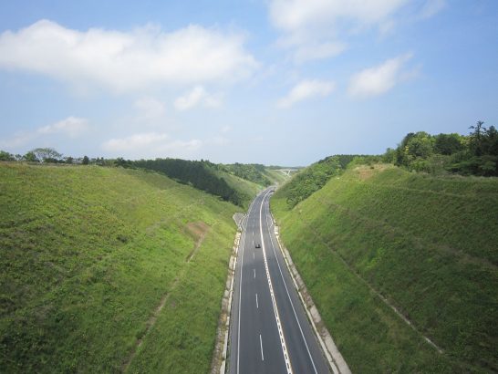 写真①②③、いずれも本日、昼前の散歩道にて。①パワースポット「東伯第3跨道橋」より米子方面を見る。 ②果樹園の小さな白い花。何の果樹? ③美しく力強い新緑の塊。