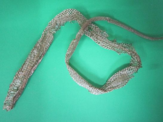 蛇の抜け殻、毎年デカイのが1つあります。いつもは天井の梁からぶら下がっているのですが、今回のは床に落ちていました。はい、おかげさまでネズミもゴキブリもいないようです。
