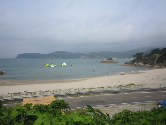 本日、第2木曜日にて「岩美川柳会」例会日。真っ直ぐ走ると1時間余り、だが、写真を撮ったり昼食を摂ったりしたかったので、早い目に出て浦富海岸に寄って上の写真をゲットして、1時ジャスト会場着。 写真上 ①本日昼前の浦富海岸。強風で大陸からの黄砂が来ていたのか少し霞んでいた。②浦富の海水浴場。海上に浮いているのは遊具。よく見ると滑り台などがあった。派手な色なので、周囲の景色からも浮いていた。③浦富漁港。