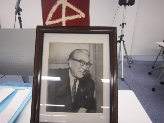 途中で昼食を摂って、会場のサンケイカンファレンス着は1時すぎ。後ろの席が好みなのだが、「川柳塔の皆さん、前に席をお取りしていますので、どうぞ…」というご親切を無にできず、前の席へ。 写真上:会場の前。岸本水府師のご温顔。