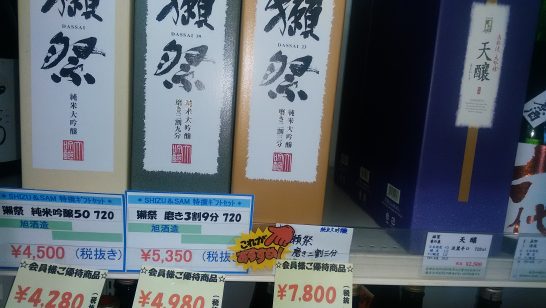 2週間に1度ぐらい、行きつけの酒の量販店から「会員割り引き案内」というのが来る。私が買うのは黒霧島だけなのでゲットしたらすぐに帰る。だが、昨日は家内から依頼の味醂や料理用の酒などを探して店内をぶらぶら。していたら山口県の銘酒「獺祭・だっさい」が目に付いた。米の研ぎ方によって価格が違うようである。「ふ~ん」と思ってなに気なくその左を見ると、なんと【 死神 】という名の酒。これは島根と書いてある。島根には変な人間もいるが変な酒もある。しかし、この酒、送り主不明で送られてきたら気分悪いやろな~…(-_-;)