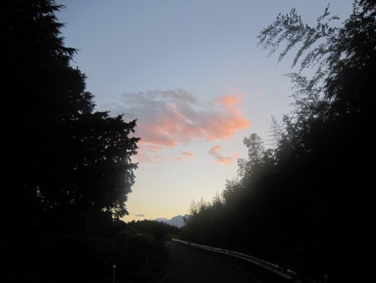 写真は上に書いていますように、昨夕5時25分の夕焼けです。朝は目が覚めても目を瞑ってベッドにいるのが快適なので散歩しません。