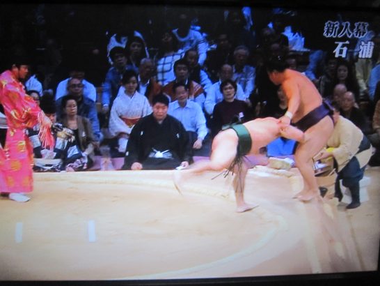 本日の大相撲にて、石浦が9連勝! 現在9勝1敗で幕内のベストスリーに入っている。(写真上①②)今場所も余すところ5日。さて、あと何勝できるか? これからは上位で好成績の力士と対戦させられるので、これまでのようには勝てないだろうが、2勝3敗で凌いでも、11勝4敗。であれば、技能賞と敢闘賞のダブル受賞も見えてくる。