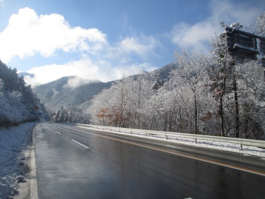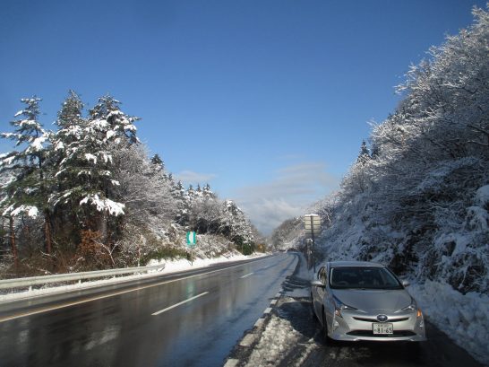 はい、昨日の朝、峠の前後はご覧のような青空で、空気がキリッと冷えていました。車のインジケーターでは外気温2℃。でも着込んで行ったので、写真を撮っているときでも寒くは感じませんでした。