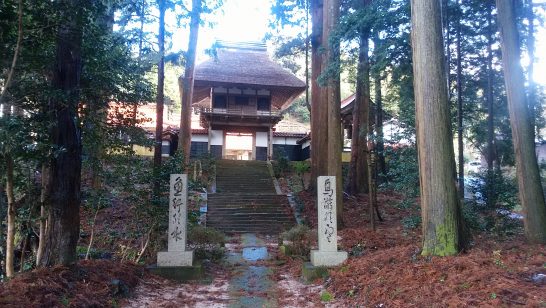 旅行参加者17名+添乗員=18名のうち、所用で1名欠席。1時間弱は添乗員さんの説明や注意。(1月21~26日の予定にてシンガポール) のち懇親会。ビールで乾杯後は焼酎湯割り。昼間なのでガンガンではなくグイグイていどで3~4杯。4時半ごろ終了。帰路は車で来ておられた方に送っていただいた。写真①②、町文化財【光徳寺の山門】。