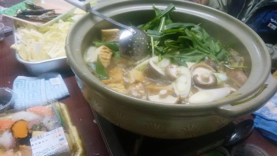本日午後6時より、コンテナハウスにて新年会。参加者9名はほぼフルメンバー。皆さんはビールで乾杯だが、私だけは焼酎湯割りから。のち、清酒の「なかだれ」も出てきたが、最後まで焼酎オンリー。アバウト2時間、国際情勢から町内情勢まで、幅広く意見を闘わせ(ごたくを並べ)、のち運転代行「岩さん」を呼んでバイバイ。 おしんへ付き合ってくれたのは、カラオケ好きのAさんに加えてFさん。水曜日のおしん、先客3名のみ。交代で歌って先ほどバイバイ。写真、コンテナハウスの「鴨鍋」