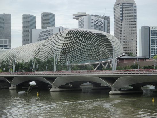 シンガポールの印象をひとことで言えば「公園の中の都市」という感じ。高層ビルの間を縫っている道路の両側には立派な街路樹と花々がいっぱい。熱帯&多雨で植物の育ちが早いということもあるのだろう。そして、行政がその環境維持に金をかけているのは、あちこちで作業者が手入れしていたので分かる。また、ビルも個性的な外観が多い。若い感性を思い切って取り入れているのだろう。そのユニークなビルの中でも特に印象的だったのは、シンガポールを代表する下の写真。舟の形をした屋上はプールのある公園。このような大胆なものは、発想まではあったとしても、実際に「作ろう!」と決断を下し作ってしまったことは、凄い! 写真3番目、ギザギザの建物はオペラハウス。一番下は「個性的ビル群」で紹介するのは失礼なモスク。多国籍国家を象徴するようにアラブ・ストリートの一角に聳え立っていた。写真、いずれもスッキリしないのは腕が悪い所為もあるが、快晴の日がなく、曇天や小雨が多かったため。