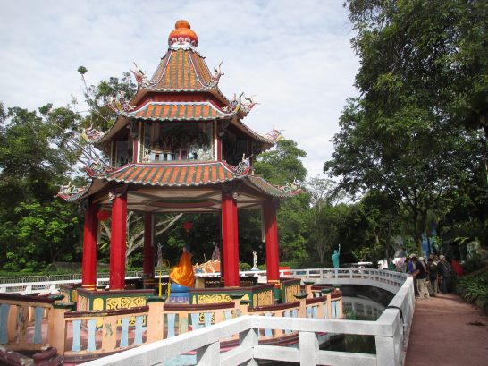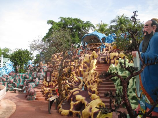 シロソ砦の戦争記念館の展示は、上の蝋人形がメインで、他はほとんどが文献であるため写真には適さず。これで「旅日記」を終了するのは幕切れとして暗いので、ちょっとバカバカしい写真をアップして終了します。下は【タイガーバーム・ガーデン】。タイガーバームというのはご存知のように「メンソレータム」のような塗り薬。拙宅の薬箱にも香港で買ったのが2~3個転がっている。これで財を成した兄弟が作ったのが「タイガーバーム・ガーデン」。香港のは閉鎖されたが、このシンガポールのは健在。入場は無料だが、リピーターっているのか? と思うようなシロモノ。悪趣味の極みと言えば失礼だが…。写真を観ていただいただけで、その異常さはお分かりになると思う。