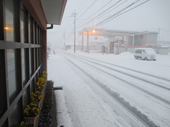 先ほど町内放送で「JR線、鳥取と米子間は運転中止です」と言っていました。バスもストップ。ですから、拙宅も本日は臨時休業です。上に書きましたように、玄関前と店の屋根(陸屋根でフラットだから雪が滑り落ちない。全荷重が柱にかかっている)だけは、これから取り除こうと思っています。無理せぬよう頑張りま~す!