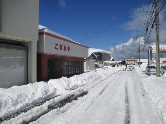本日も午前中は降っていたが、昼前から晴れ間も出てきた。店は「開店休業」状況で、来客があれば鳴るチャイムをオンにして、奥さまも居間でテレビ鑑賞。私は2階でゆっくりデスクワーク。15日締切の投句や原稿などを仕上げたので、昼食前、運動不足解消のつもりで、散歩代わりに拙宅から南へ300メートルほどの郵便局まで歩いて投函。     写真①、いつもお世話になっている東伯郵便局。②郵便局東側の琴浦町役場。駐車場も除雪ゼロ。明日の職員出勤にどのように対処するのだろう? ③役場前の道路状況。役場の前は融雪装置(路面中央からの散水)で溶けている。④「こぎれや」の前の状況。
