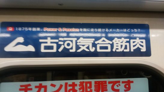 それにしても、「気合筋肉」の下のシール【チカンは犯罪です】と読めるが、大阪のオッサンはどういう心算でやっているのだ?