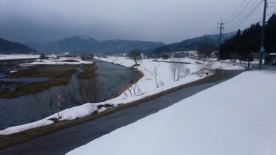 上の雪の写真は帰路の旭川沿いです。やっぱり蒜山高原は多いですね。同じ岡山でも西大寺とえらい違いです。