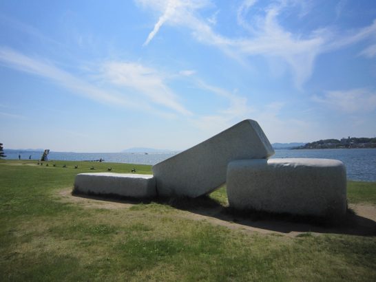 昨日書こうと思って忘れていたこと。表札を付けていない家が多く「このあたりのハズだが…」と探していたら、下校途中の小学校3年生ぐらいの男の子が通りがかったので、「〇〇さんの家、知らない?」と訊くと、「ちょっと待って…」と自分の家にバッグを置いてから、「こっち!」と言って走り出した。その後をゆっくり車でついてゆくと、どんどん走る。100メートルほど走って右折して、また50メートルほど走って、息を切らせて「ここ!!」と教えてくれた。(サンキューベリマッチ! 君の身体を張った親切、俺は生涯忘れないよ!)          ・                     写真上: 27日アップと同じ「島根県立美術館」の屋外展示彫刻。背景は宍道湖。