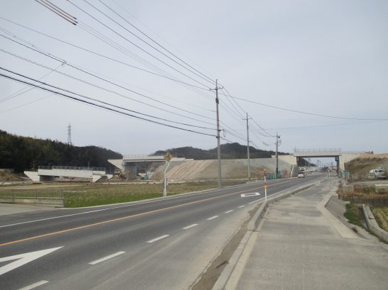 写真下:国道9号線から鹿野へ向かう1本道にかかる工事中の山陰道。今年度中に鳥取西手前の吉岡温泉?まで完成とのこと。これが全線開通すると大阪出張も一層楽になる。と言ってもせいぜい15分ほど?短縮されるだけだろうが。