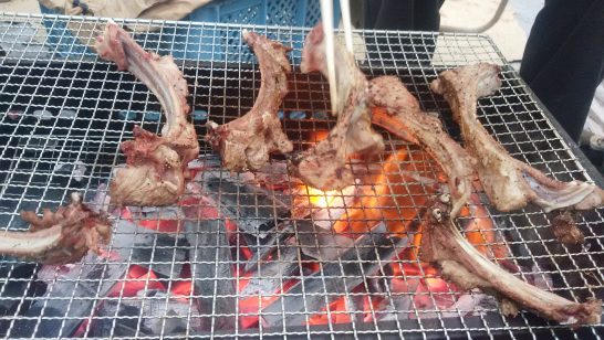 そう、昨夜、リブを齧りながら、みんな同じこと言っていました。「骨の周りの肉がうまい!」と。「焼き肉のタレ」もあったけど、ちょっと甘すぎて、やっぱり「塩コショウ」。これ、仲間から「買ってきて」と急に頼まれて、家内が向かいのマーケットで買ってきた牛乳瓶ぐらいのデカイの。ラベルも「塩コショウ」で、最初から塩とコショウが混ざっている。こんなんあるの知らんかった。