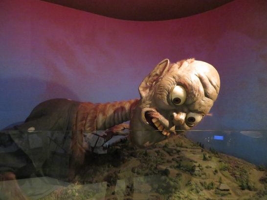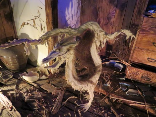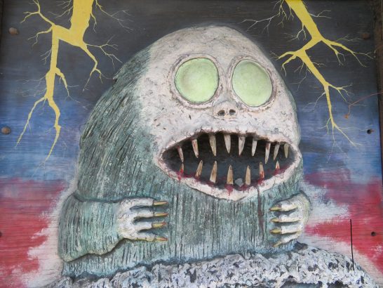 写真上、昨日ご案内した境港の「水木しげるロード」で撮ったもの。①~③は「水木しげるロード」の屋外像。④は妖怪ではなく「水木しげる記念館」の水木さんの書斎を再現したもの。⑤~⑨は同館内での「撮影可」の場所で撮ったもの。最後の⑩は、どこかの店先に描いてあったもの。水木さんの絵は愛嬌とかユーモアがあるので怖くないが、これはチョイと不気味。暗い廊下に貼ってあったら怖いだろう。