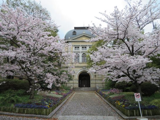 本日、朝5時40分出発。鳥取道~中国道など渋滞なくスイスイと進んで、新大阪駅前「メルパルク」地下駐車場着は9時前。JR新大阪より元町へ。元町から徒歩8分?ほどで会場の【兵庫県民会館】へ。写真①②は会場すぐ南の【兵庫県公館】。桜が満開で見事だった。【兵庫県公館】は、明治35年(1902年)に県本庁舎として建てられ、現在は迎賓館・県政資料館等として使われている。